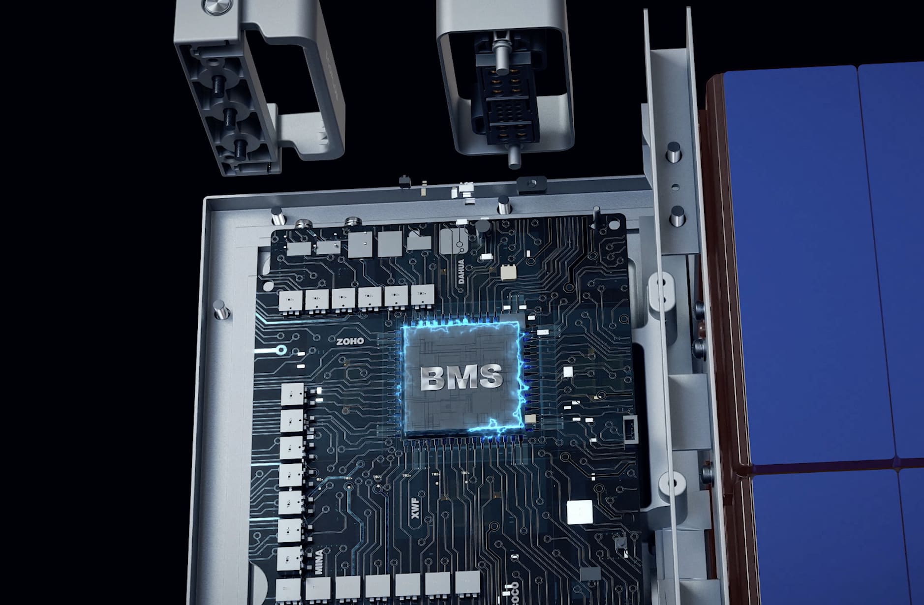 Система аккумуляторных батарей также включает микросхему BMS, соответствующую автомобильным стандартам, что обеспечивает высокий уровень безопасности. Это означает, что неисправность одной батареи не повлияет на работу других, и в каждой батарее интегрирован активный аэрозольный модуль для пожарной защиты, обеспечивающий дополнительный уровень безопасности. Управление системой через облачную платформу BMS, использующую облачные вычисления для эффективного контроля и оптимизации, позволяет минимизировать риски и повышать эффективность.