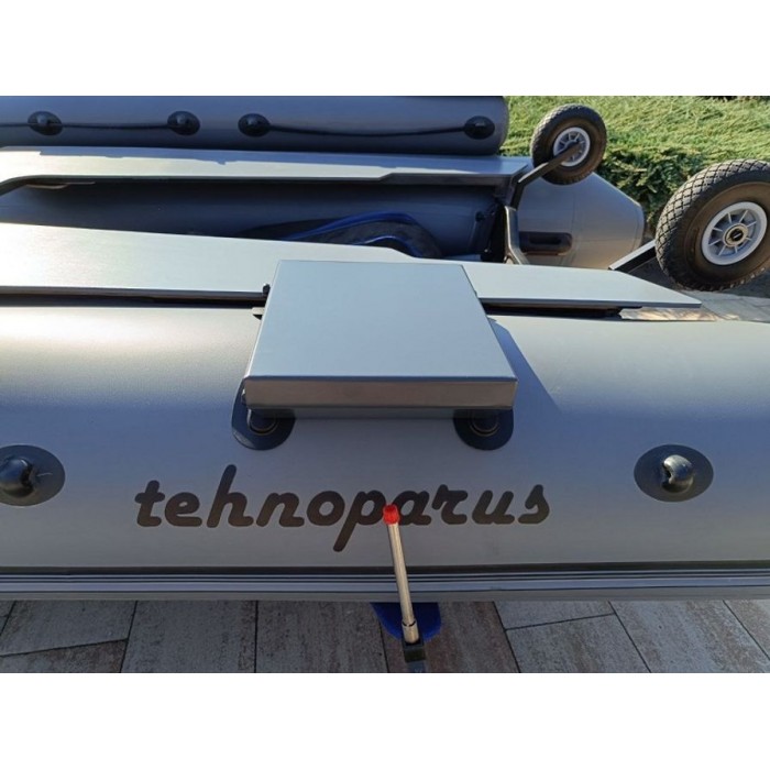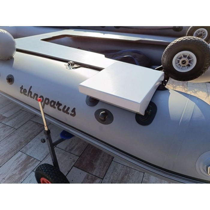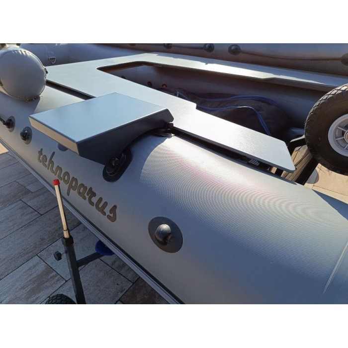 Монтаж и демонтаж платформы осуществляется с помощью четырех винтов с удобными маховиками, без необходимости использования дополнительных инструментов, что делает её удобной для использования и не мешает свертыванию лодки.