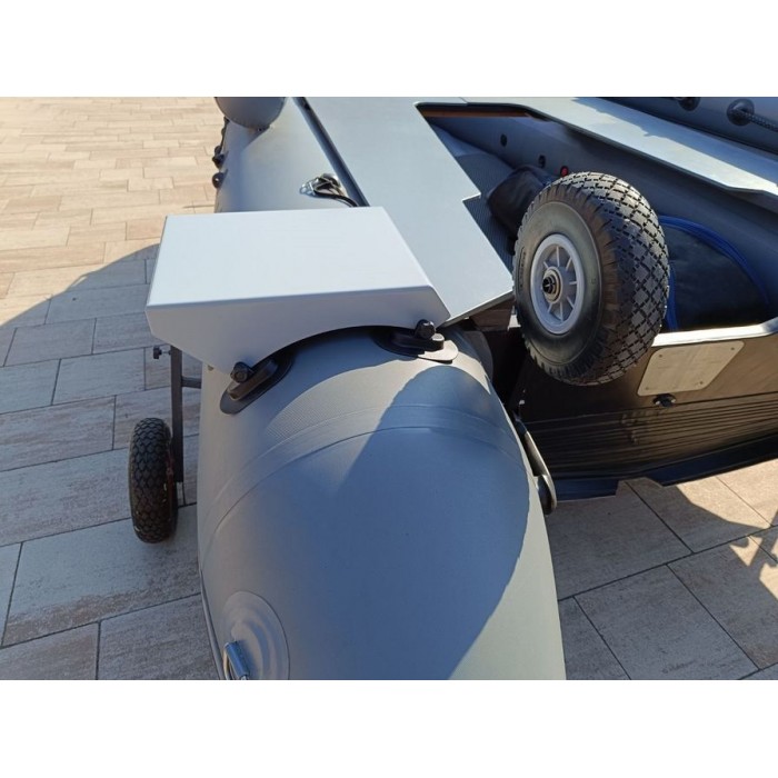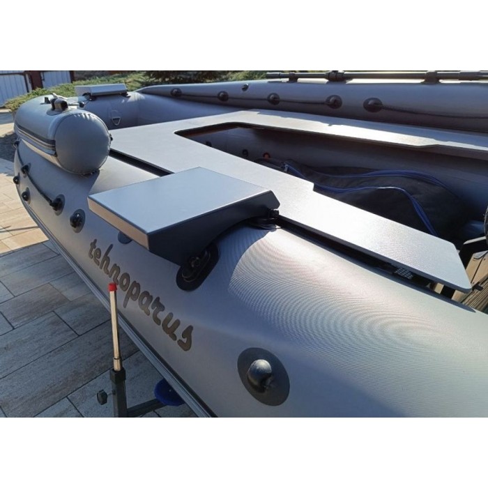 Изготовленная из морского алюминия толщиной 3 мм, платформа весит всего 1,6 кг. Благодаря специальной гибке граней, она обладает высокой жесткостью, обеспечивая надежность при установке. Платформа крепится при помощи тентовых креплений, что позволяет надежно зафиксировать её на надувных баллонах различных диаметров. Устанавливать платформу можно не только на носу лодки, но и на борту — это помогает устранить вибрацию экрана эхолота, что особенно оценят владельцы GPS-якорей и эхолотов.