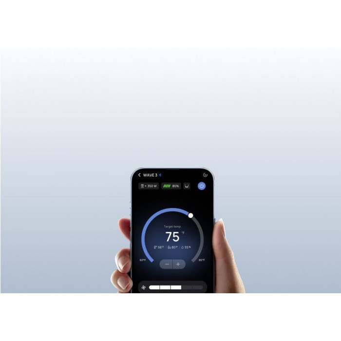 Автоматическая настройка климата. EcoFlow Wave 3 самостоятельно определяет, нужно ли охлаждать или обогревать, в зависимости от внешних условий. Это особенно полезно в районах с переменчивой погодой — например, в горах или прохладных регионах.