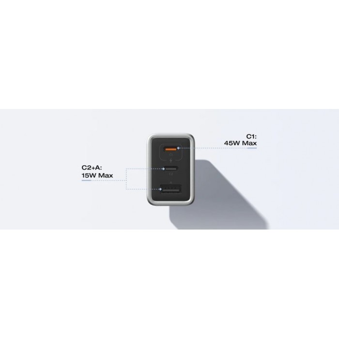 Тройной выходной порт - USB-C1 до 45 Вт / C2+A 15 Вт