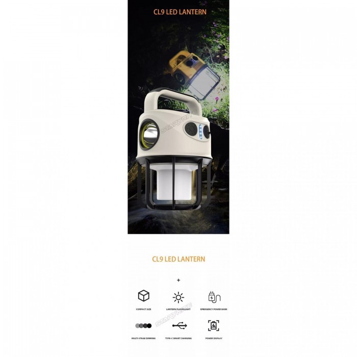 Фонарь оснащен встроенным аккумулятором с емкостью 4800 мАч. Устройство предлагает три уровня яркости: 240, 120 и 60 люмен. Благодаря специальному светофильтру, свет мягко рассеивается и создает приятную атмосферу.