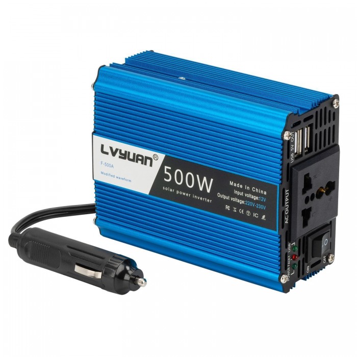 Представляем Вам преобразователь/инвертор NIC LVYUAN с 12В на 220В 500Вт. Благодаря 2-м быстрым зарядным портам USB может интеллектуально обнаруживать ваши устройства и обеспечивать лучший комбинированный зарядный ток для зарядки. Автомобиль 0-2.1A каждый порт, 3.1A общий выход.