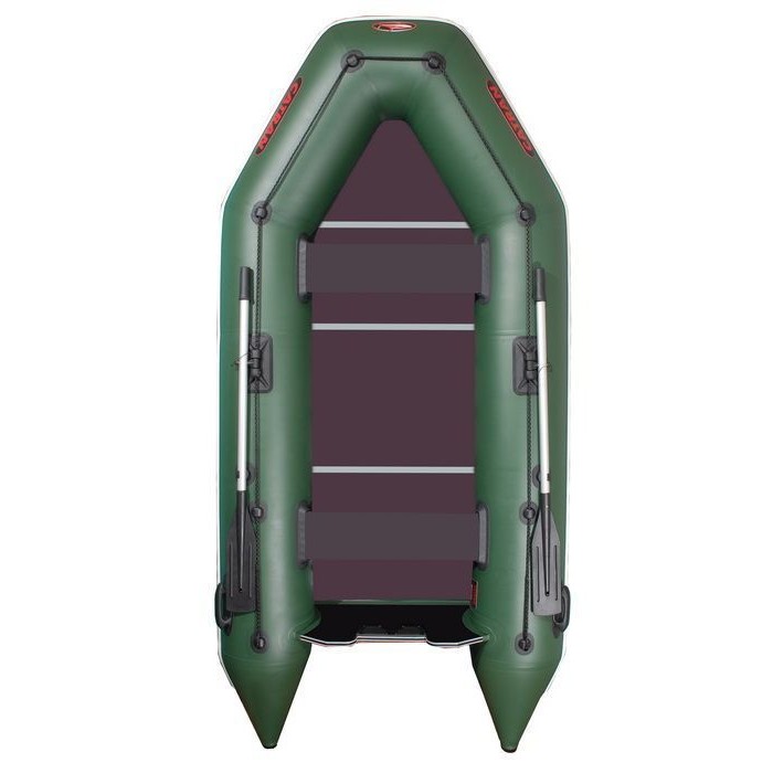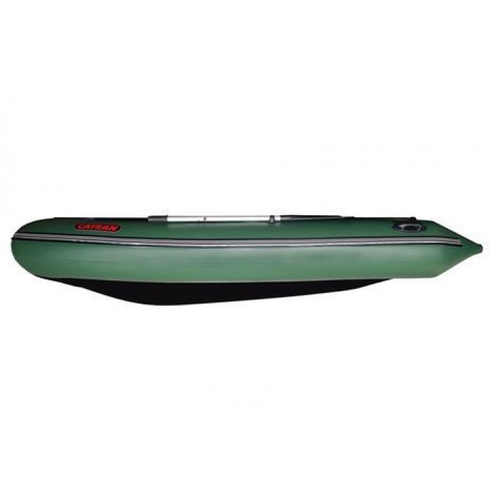 Моторная надувная лодка Катран C-310K с cплошным наборным настилом и надувным килем (Длина 310 см, ширина 141 см, диаметр баллона - 38 см). Пригодна как для эксплуатации под веслами, так и под лодочным мотором мощностью до 20 л.с. В зависимости от загрузки лодки и мощности установленного лодочного мотора возможна навигация как в глиссирующем, так и в водоизмещающем режиме. В лодке пристуствуют - гидроотбойник, высокоэффективные поворотные уключины, ручки для переноса.