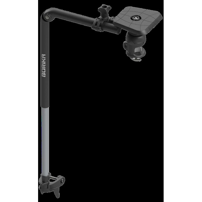 В комплект входит платформа для мониторов до 7″, оснащенная поворотной основой 106 х 98 мм, которая позволяет поворачивать устройство на 360° без необходимости его снятия. Это удобно, например, для настройки монитора под углом, чтобы избежать попадания прямых солнечных лучей. Фиксирующий адаптер в форме 12-угольной звезды крепится на платформе, что обеспечивает дополнительную устойчивость. Платформа соединена с телескопическим держателем с помощью хомутов, которые дают возможность регулировать положение устройства в зависимости от ширины борта и его высоты.