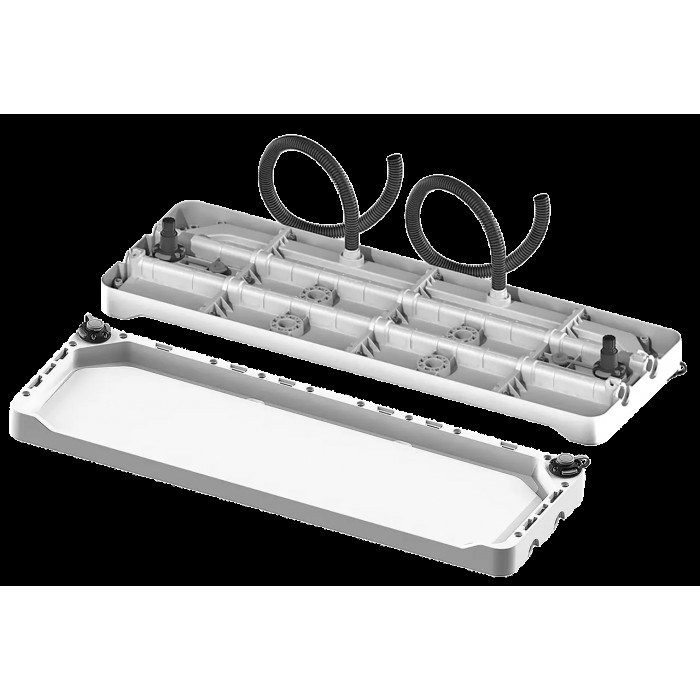 Конструкция стола состоит из 4-х секций, соединенных шайбами, винтами M6*25 DIN 912 и гайками M6 DIN 985. К комплектации - 6 замков Fs219, 4 из которых прикреплены под поверхностью с помощью 16 саморезов 6, 3*25 DIN 92 таким образом, чтобы у них можно было фиксировать адаптеры. Два других замка установлены на рабочей поверхности по 8 винтам М6*20 DIN 912 и гайкам M6 DIN 985. К сборке добавляются 2 адаптера с двусторонними шлицами в форме 12-угольной звезды. Вдоль периметра предусмотрены места для подвешивания инструментов. На одной из средних секций – отверстие для слива, оснащенное гофрированным шлангом, L – 1000 мм. Секции изготовлены из ABS-пластика, основные детали замков и адаптеров – из полиамида, армированного стекловолокном. Крепление – из нержавеющей стали марки А2.