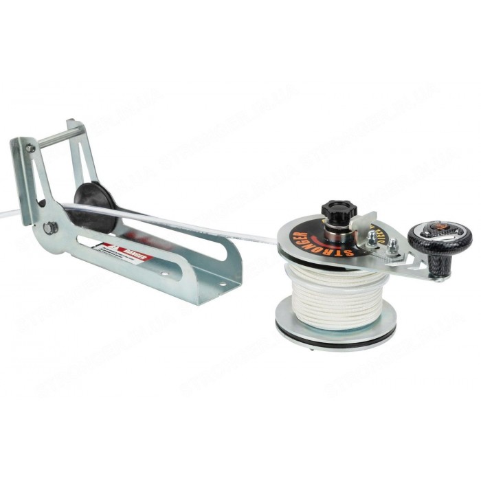 Роульс, входящий в комплект, изготовлен из гальванизированной стали толщиной 3 мм и оборудован роликом качения из износостойкого пластика. Его размеры — 250×75×128 мм. При необходимости можно установить фирменный удлинитель для увеличения длины. В конструкции предусмотрены крепежные отверстия и прорези для фиксации якоря во время движения по воде. Специальная форма роульса позволяет смягчить удары и устранить шум при подъеме якоря. В комплект поставки входят необходимые крепежные элементы, страховочный карабин и U-образная скоба для фиксации якоря. Важно! Для корректной работы лебедки Stronger SH 10 используйте только комплектный роульс.