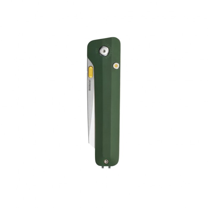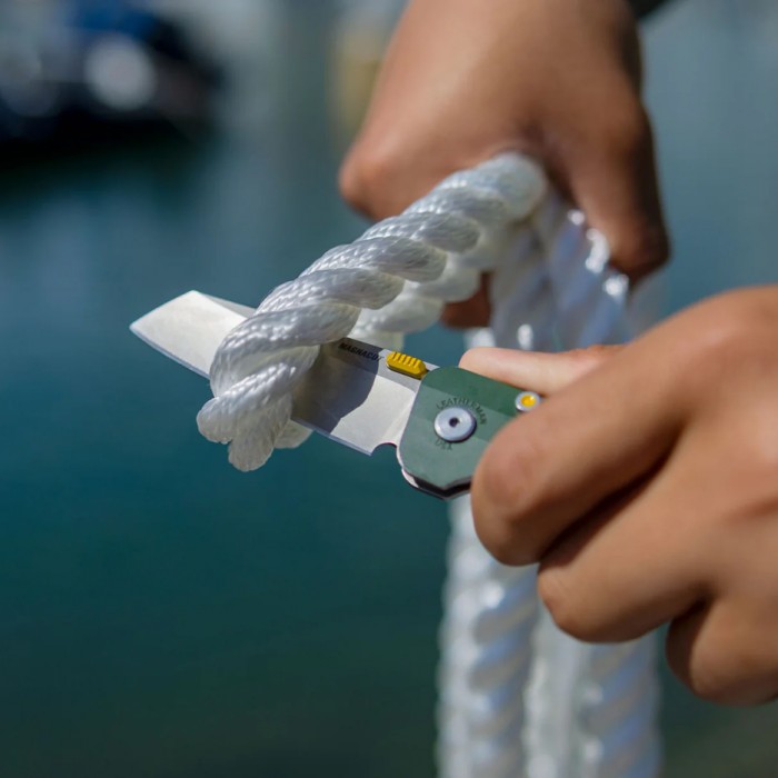 Главный рабочий элемент Glider — клинок из передовой нержавеющей стали MagnaCut, выполненный в модифицированной форме Sheepsfoot с саблевидной заточкой. Такая конфигурация идеально подходит для точного и контролируемого реза, будь то вскрытие упаковки, обрезка верёвок или работа по дереву. Сталь MagnaCut славится выдающейся твёрдостью, стойкостью к коррозии и отличным удержанием режущей кромки, даже при регулярной нагрузке. Удобный закруглённый шпенёк на клинке обеспечивает плавное открытие и закрытие, делая использование ножа комфортным и безопасным.