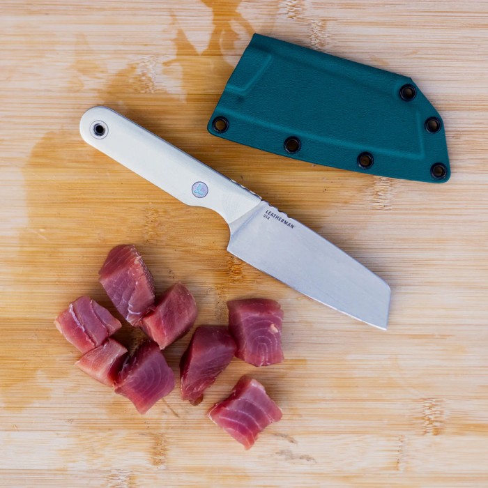 Leatherman Rustle Alpine — это надёжный нож с фиксированным клинком, созданный специально для кулинарии на природе. Он объединил эстетику классических полевых ножей с практичностью, которую ценит современный турист, кемпер или энтузиаст outdoor-кулинарии. Этот нож одинаково хорошо справляется как с нарезкой свежих овощей, так и с разделкой рыбы или мяса, обеспечивая комфорт и точность даже в походных условиях. Благодаря грамотному балансу размеров и веса, Rustle не занимает много места в снаряжении, но остаётся максимально функциональным помощником на кемпинге или треккинге.