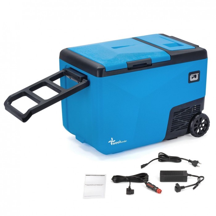 Портативный автохолодильник Weekender, обладая объемом 38 литров, весом 14,7 кг и размерами 679 x 409 x 476 мм, предоставляет достаточно места для хранения продуктов, оставаясь при этом компактным и удобным для размещения в любых ограниченных условиях. Его портативность и мощность до 60 Вт, а также возможность подключения к 12/24V DC и 100-240V AC, делают его универсальным решением как для использования в автомобиле, так и в домашних условиях.